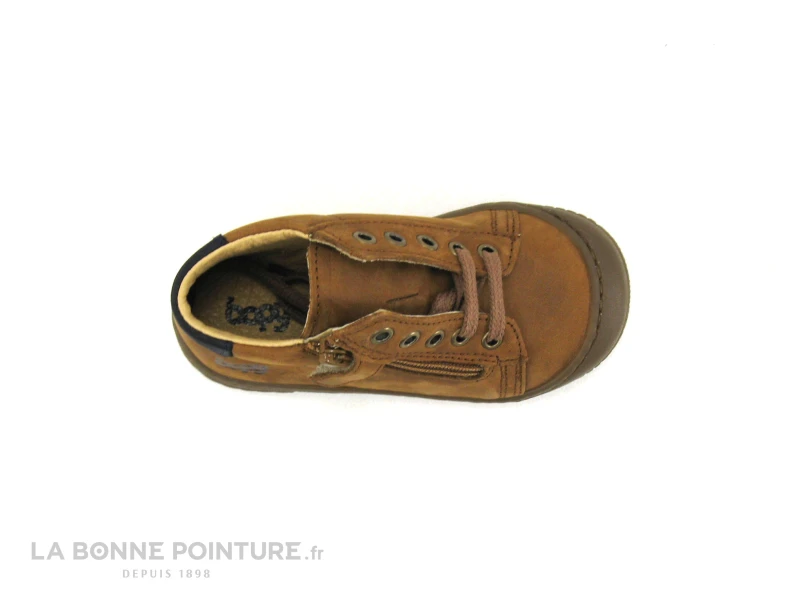 Les chaussures montantes garçon en cuir marron caramel Bopy Jejoc, des bottillons bébé tout en cuir avec zip et lacet au très bon rapport qualité / prix !