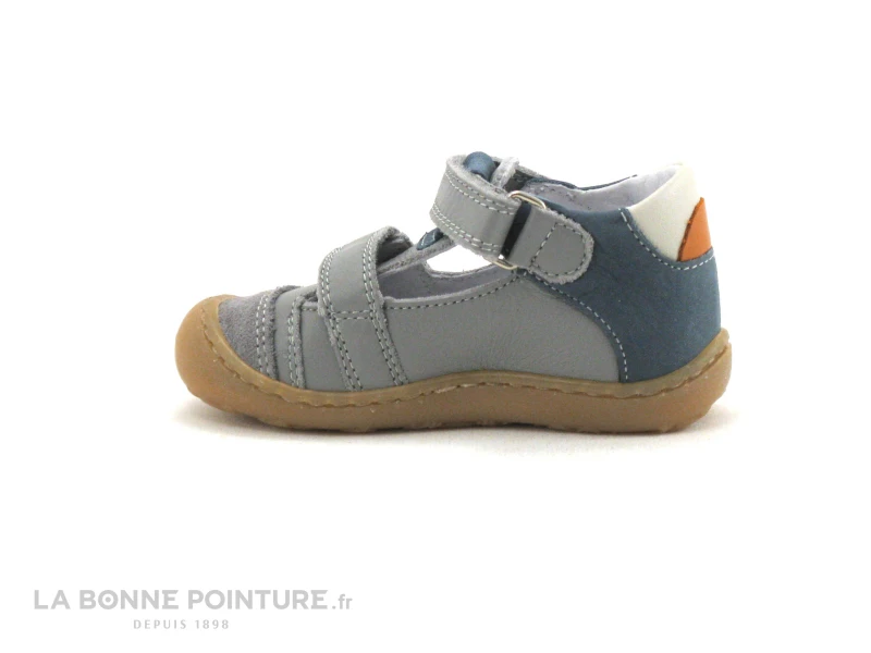 Les 2 brides velcro permettent d’ajuster idéalement la chaussure bébé grise Bopy Jet au pied de l’enfant.