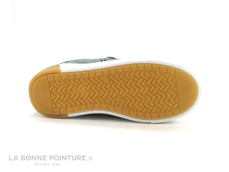 Cette basket basse garçon Bopy est fabriquée avec un beau cuir gras et nuancé vert sauge.