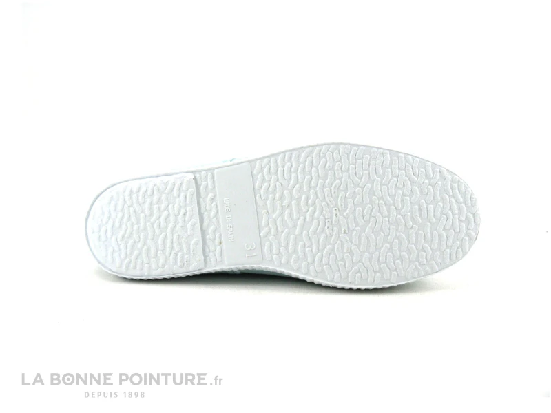 Avec leur coloris mode vert d’eau, on craque pour ces belles tennis enfant en toile lĂ©gèrement dĂ©lavĂ©e Cienta 70997 !