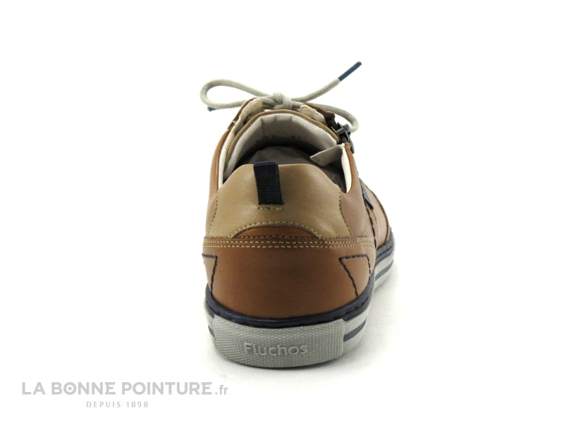Cette chaussure Homme Fluchos Quebec 9376 est en cuir lisse marron clair, avec un peu de beige Ă l’arrière et sur la languette.