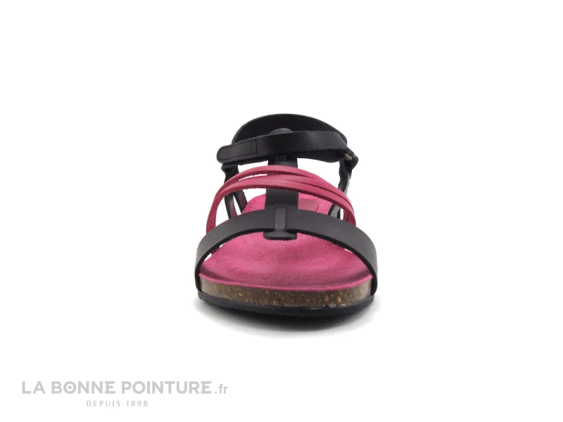 Les nu-pieds fille / femme Kickers Picnic en cuir noir et fuchsia, des sandales tout en cuir pour l’été au meilleur prix !