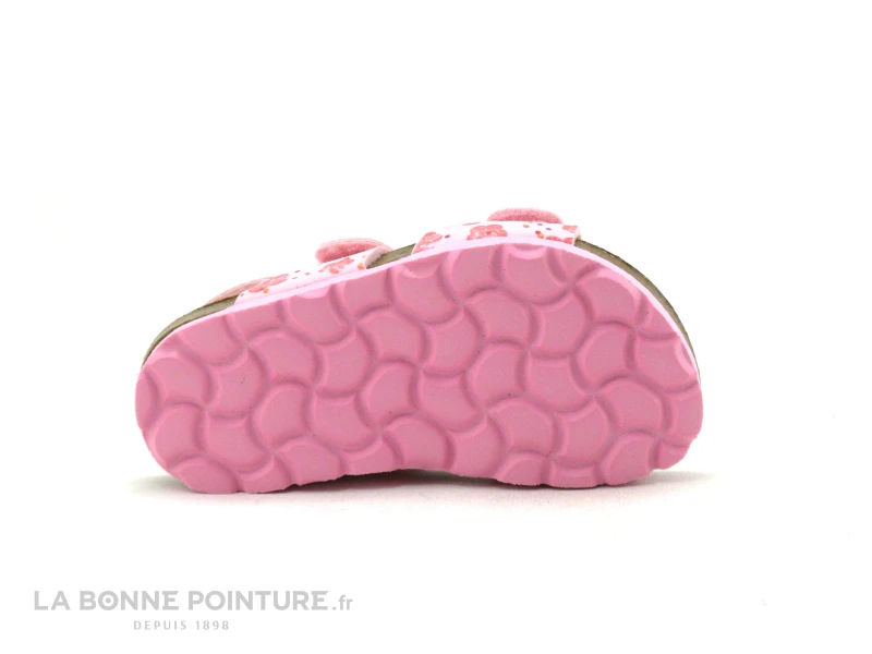 La semelle extérieure imitation liège, est complétée par une semelle de marche rose plus soutenu crantée à la fois flexible et antidérapante.