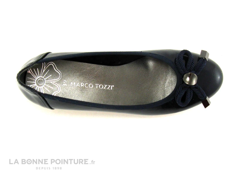 Cet escarpin Marco Tozzi est en simili cuir bleu marine, avec un noeud design et torsadĂ© sur l’avant.