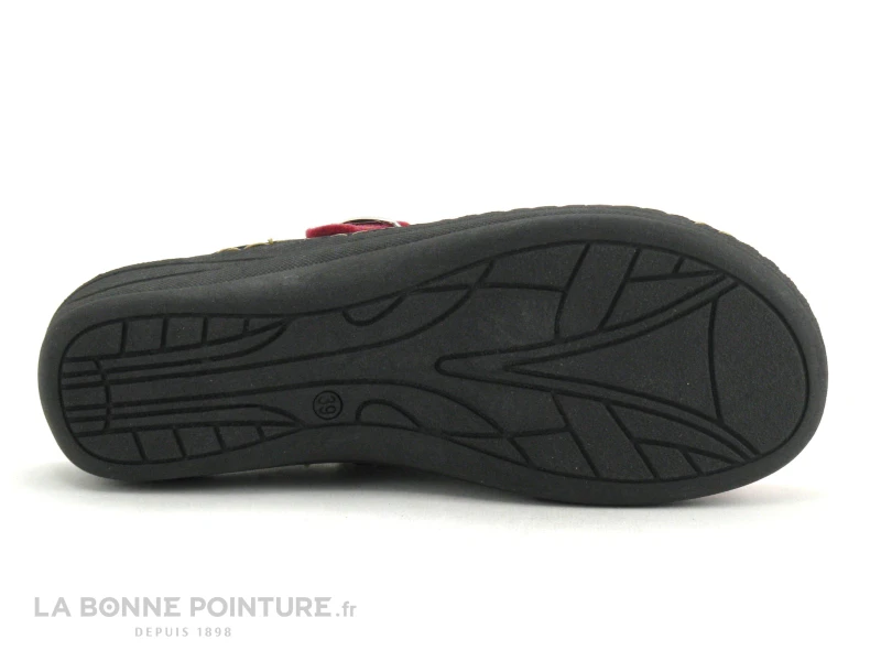 La bride avec boucle métallique se règle sur 5 positions et permettra d’ajuster la pantoufle Patrizia Azzi Patoi à votre coup de pied.