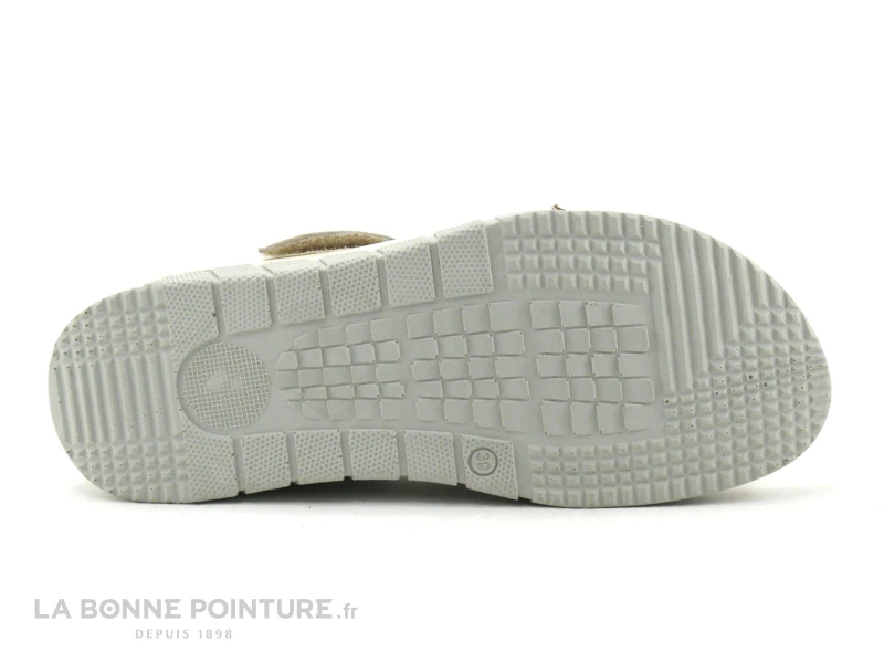 Cette mule réglable Femme est en cuir beige, avec deux brides à scratch qui permettent de régler la chaussure à votre morphologie.