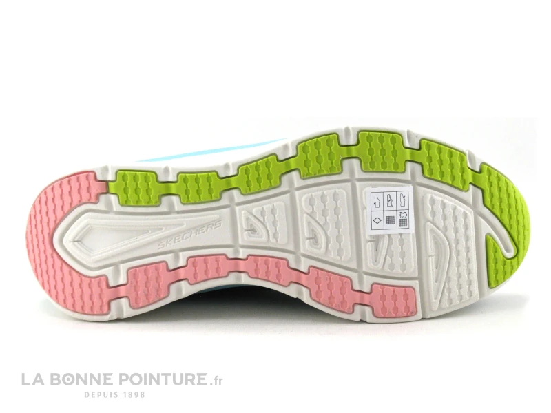 La petite languette jaune fluo à l’arrière aide à enfiler facilement la chaussure Skechers 149023.